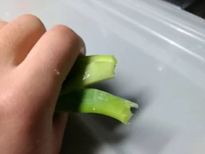 ちなみにある程度成長したものは根元が固くなっており、手でもひねるようにして折り取れますがちょっとコツがいります。